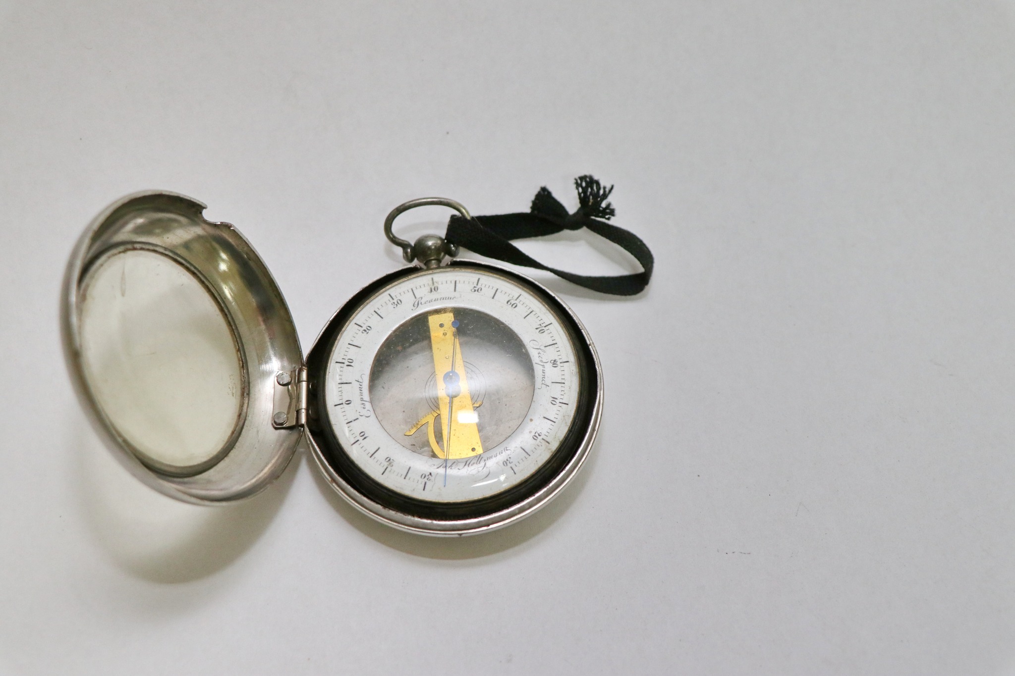 Цікавим є і старовинний кишеньковий барометр, виготовлений фірмою австрійського годинникаря Йоганна Гольцманна (1763–1827), яка знаходилась у Відні. Це анероїдний барометр, який працює без рідини, використовуючи деформацію корпусу від зміни тиску для руху стрілки. Використовується для вимірювання атмосферного тиску.